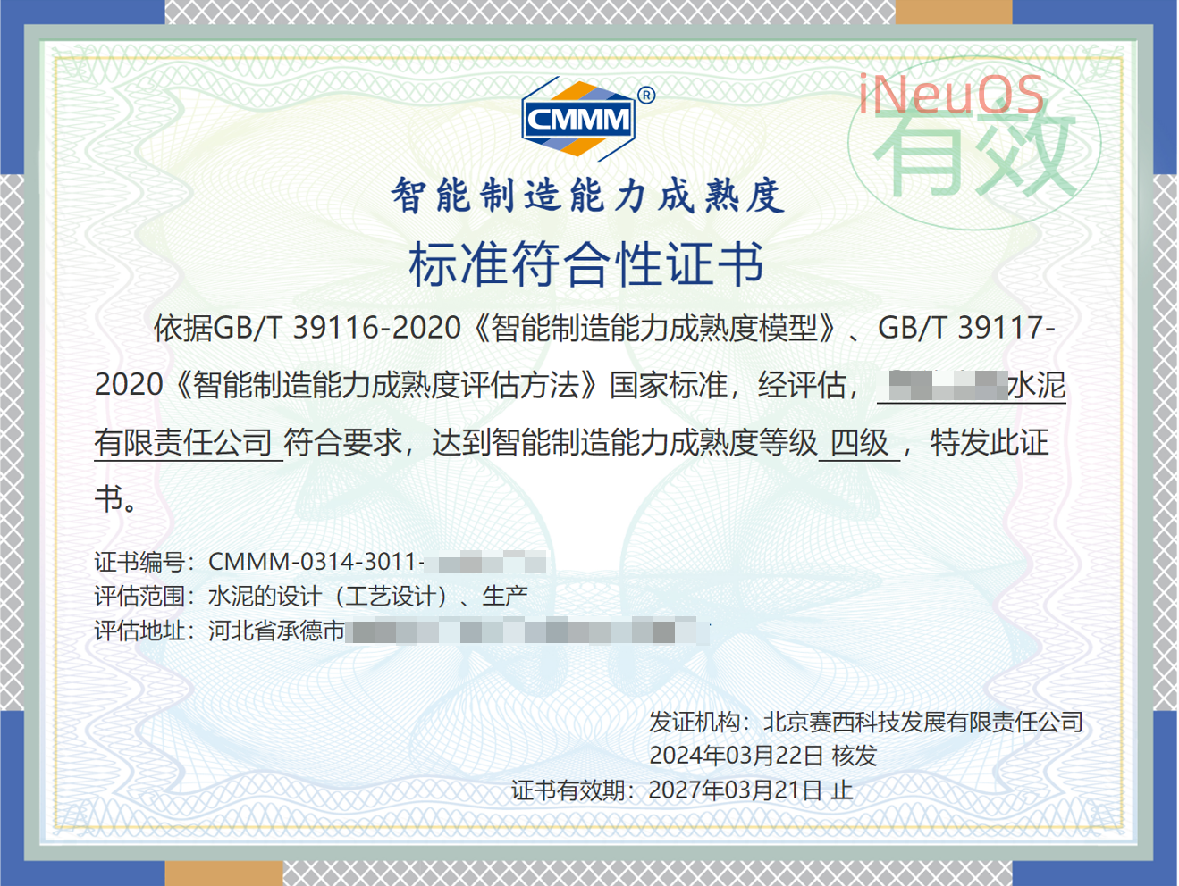 依据 GB/T 39116-2020 《智能制造能力成熟度模型》、 GB/T 39117-2020 《智能制造能力成熟度评估方法》国家标准和相关标准,采用智能制造能力成熟度模型( CMMM )对企业进行评估, 为企业提供 成熟度模型( CMMM )评级服务,通过评级后可以获得相应的国家政策补贴。