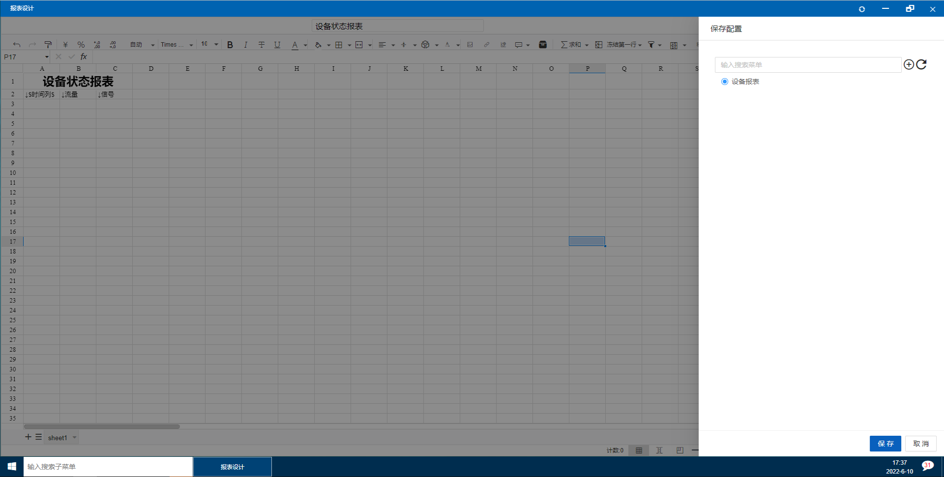 在iNeuOS系统桌面双击【报表设计】,可以打开在线Excel报表,自定义配置数据展示的模板。如下图: