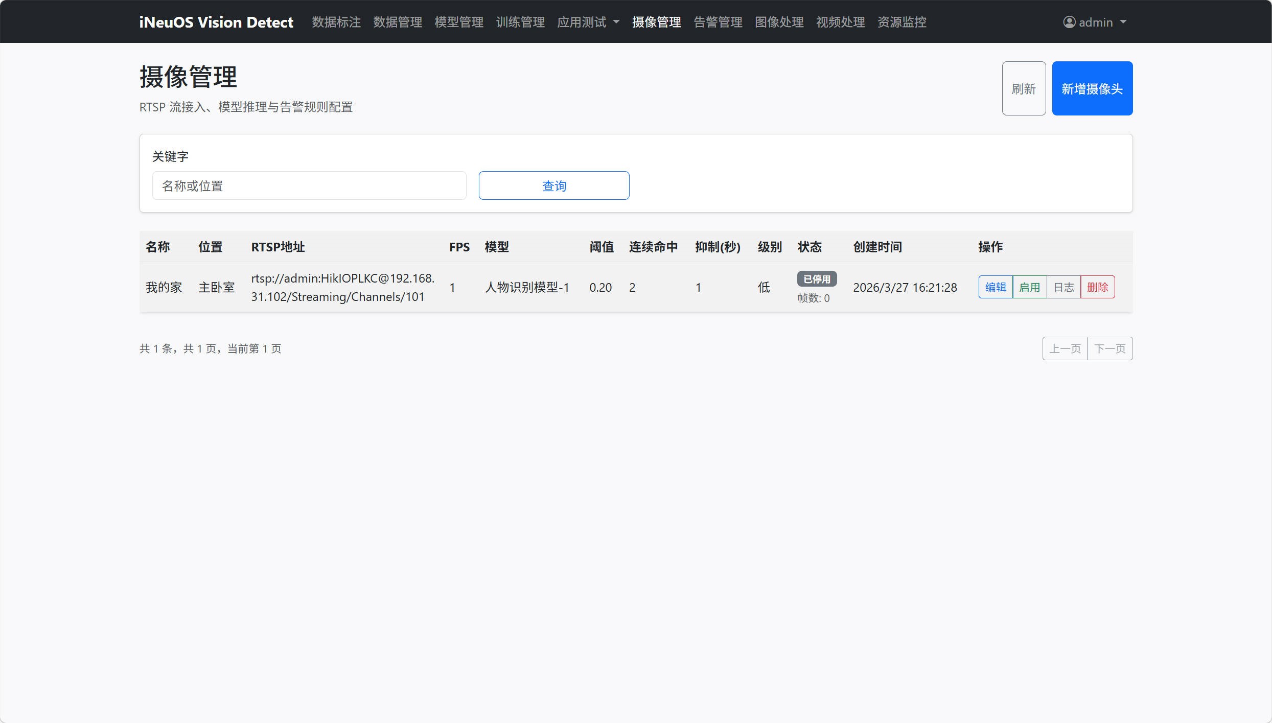 iNeuOS Vision Detect是面向机器视觉训练、测试、管理和应用的管理平台,覆盖数据标注、数据管理、模型管理、训练管理、应用测试、摄像管理、告警管理、图像处理、视频处理与资源监控等业务闭环。平台支持从数据到模型再到业务应用的全流程管理,可用于快速构建“可训练、可部署、可运营”的视觉智能系统。